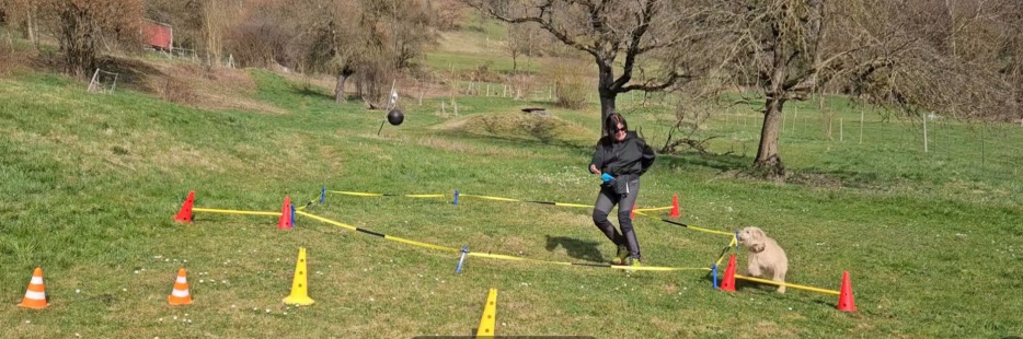Beim Longieren wird der Hund an der Außenseite eines (abgesteckten) Kreises geführt und das vor allem über Körpersprache und leise Signale.